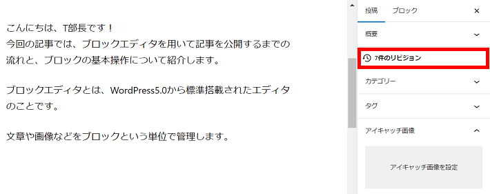 リビジョンとは、投稿記事や固定ページなどの変更履歴を保存したバージョン機能のこと。