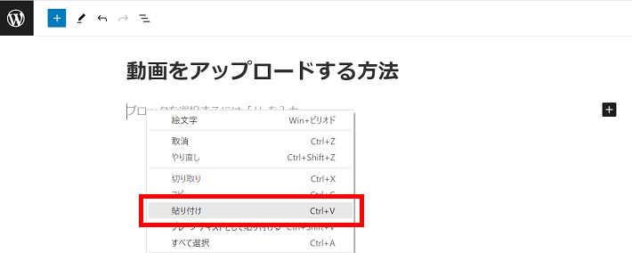 方法はいろいろありますが、今回は一番シンプルな動画の貼り付け方を解説します。