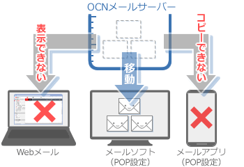 インターネットに接続できれば、どこからでもメールサーバーに保存されているメールを見ることができます。
